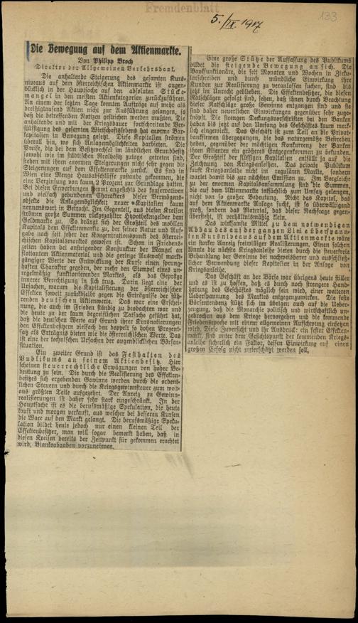 / Die Bewegung auf dem Aktienmarkte. 5.9.1917
