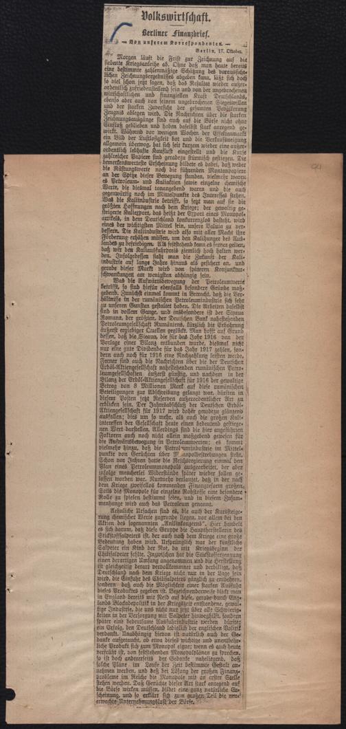 / Volkswirtschaft. Berliner Finanzbrief. 20.10.1917