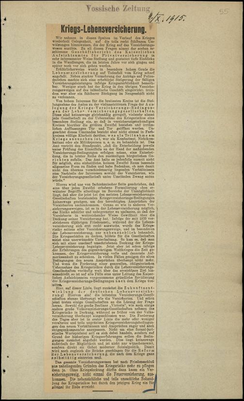 / Kriegs-Lebensversicherung. 9.10.1915