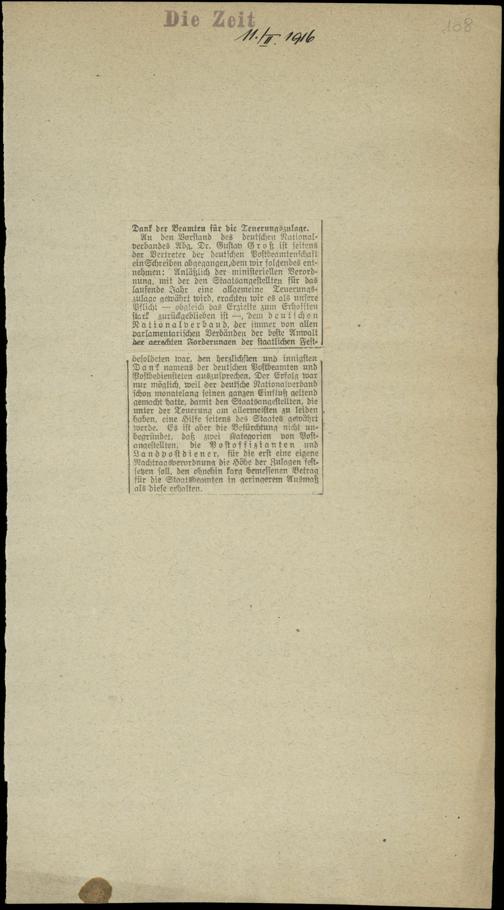 / Dank der Beamten für die Teuerungszulage. 11.2.1916