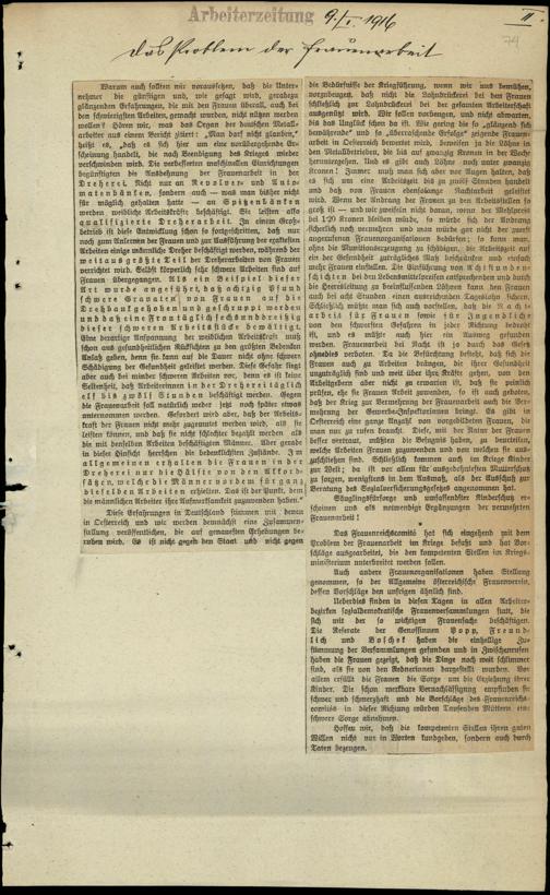 / Das Problem der Frauenarbeit. 9.1.1916