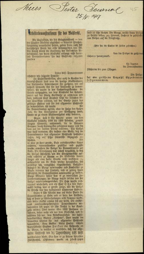 / Arbeiterdemonstrationen für das Wahlrecht. 25.5.1917