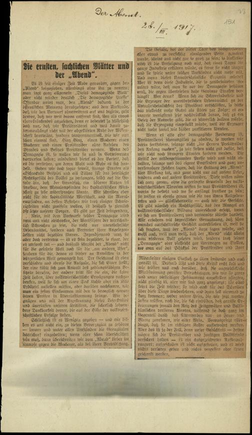 / Die ernsten, sachlichen Blätter und der ,,Abend". 28.3.1917