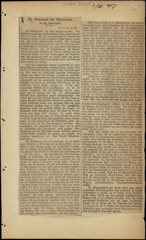 / Zur Genealogie der Steuermoral. 1.8.1917