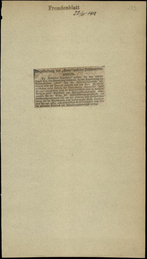 / Umgestaltung der ,,Geos" und der Futtermittelzentrale. 22.6.1918