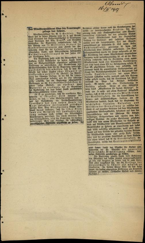 / Der Ministerpräsident über die Teuerungszulage der Lehrer. 16.11.1917