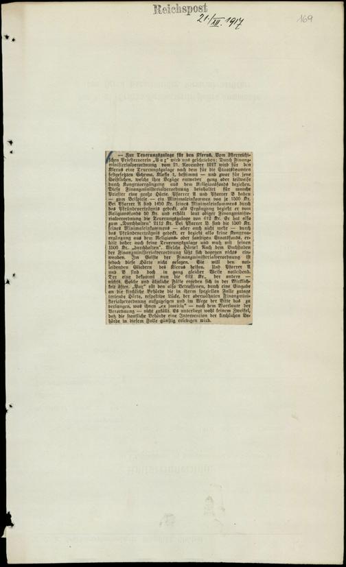 / Zur Teuerungszulage für den Kierus. 21.12.1917