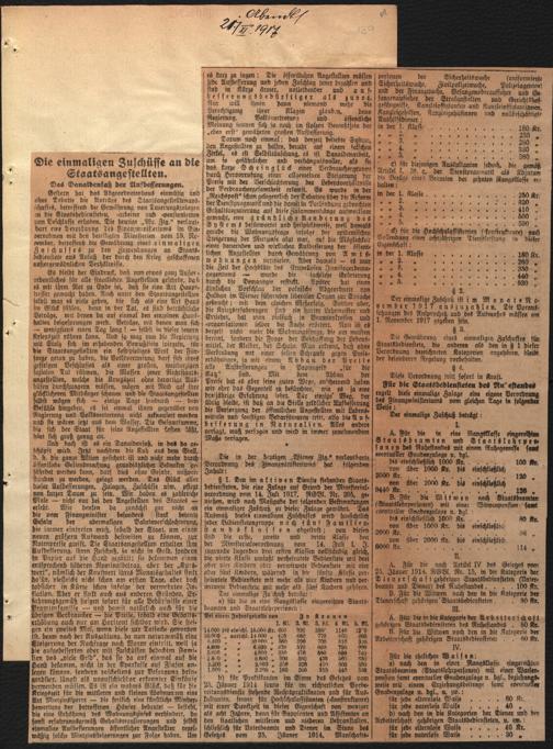 / Die einmaligen Zuschüsse an die Staatsangestellten. 21.11.1917