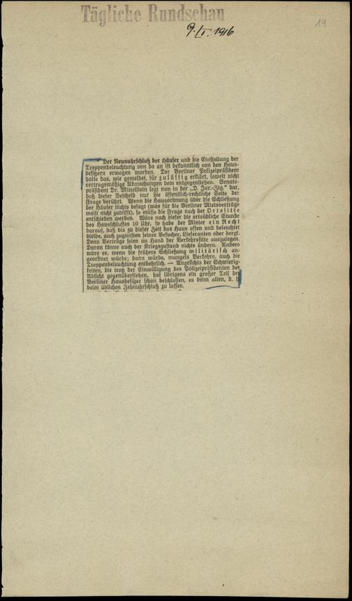 / Der Neunuhrschluß der Häuser. 9.1.1916