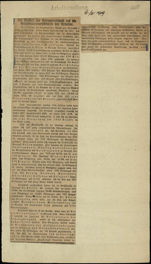 / Der Einfluß der Kriegswirtschaft auf die Gesundheitsverhältnisse der Arbeiter. 6.4.1919