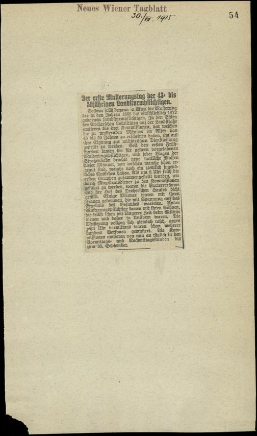 / Der erste Musterungstag der 43- bis 50 jährigen Landsturmpflichtigen. 30.7.1915