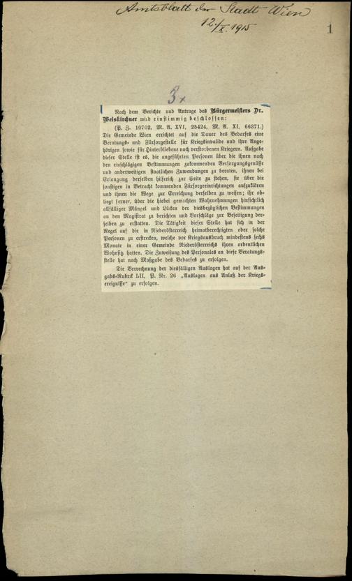 / Nach dem Berichte und Antrage des Bürgermeisters Dr. Weiskirchner wird einstimmig beschlossen: 12.10.1915