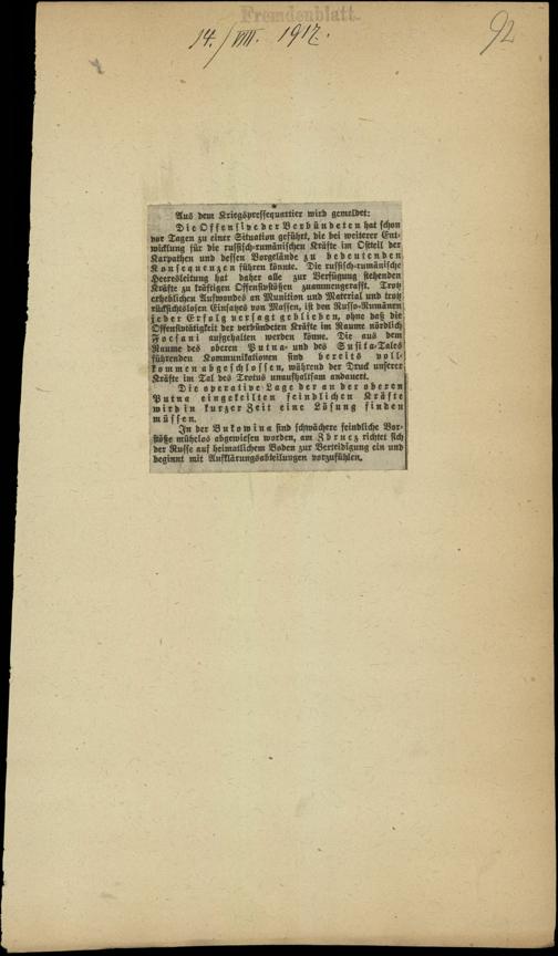 / Aus dem Kriegspressequartier wird gemeldet. 14.8.1917