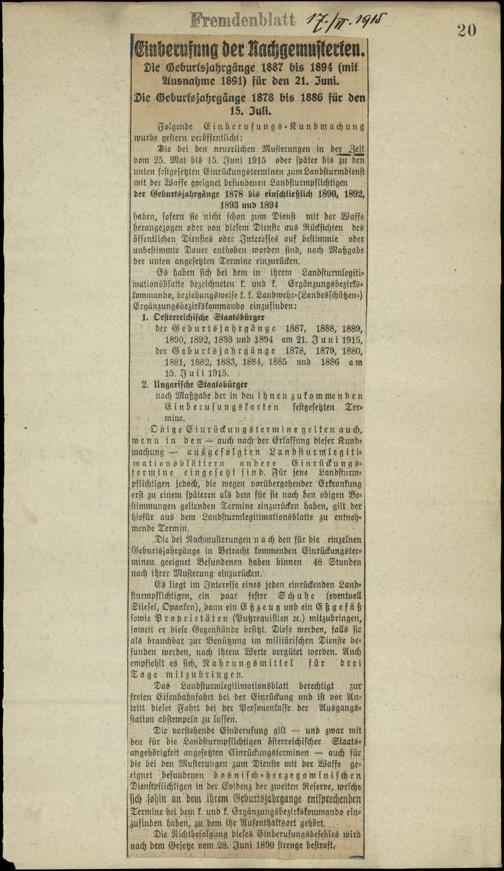 / Einberufung der Nachgemusterten. 17.6.1915