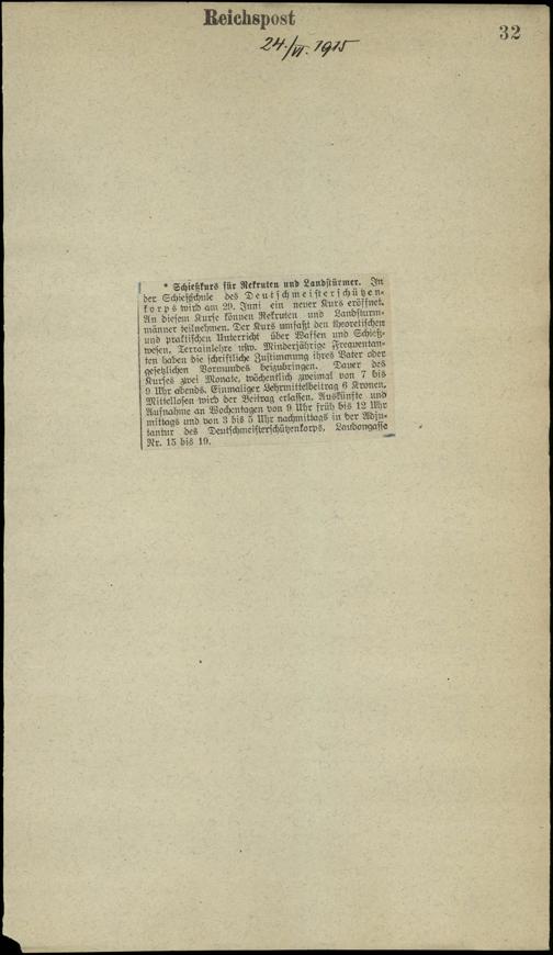 / Schießkurs für Rekruten und Landstürmer. 24.6.1915