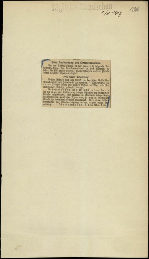 / Eine Kundgebung des Oberkommandos. 1.5.1917