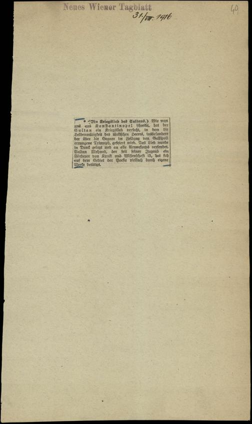 / Ein Kriegslied des Sultans. 31.8.1916