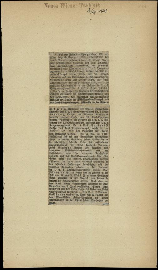 / Auf dem Felde der Ehre gefallen. 3.7.1918