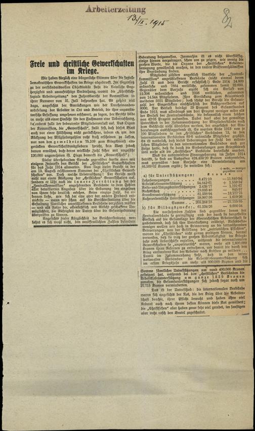 / Freie und christliche Gewerkschaften im Kriege. 13.9.1915