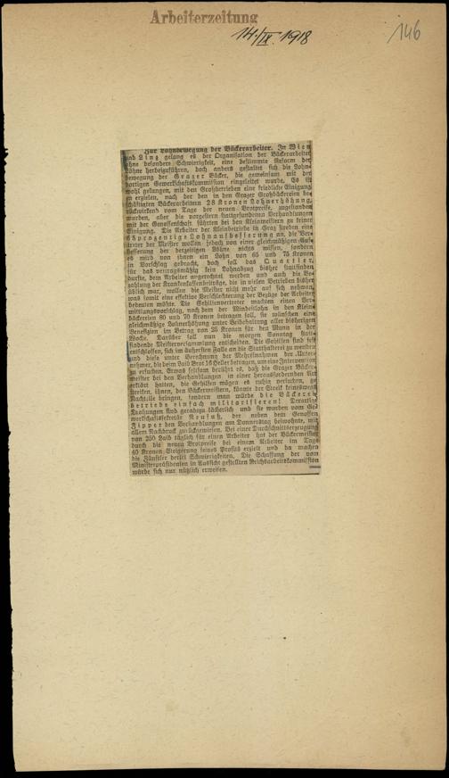 / Zur Lohnbewegung der Bäckerarbeiter. 14.9.1918