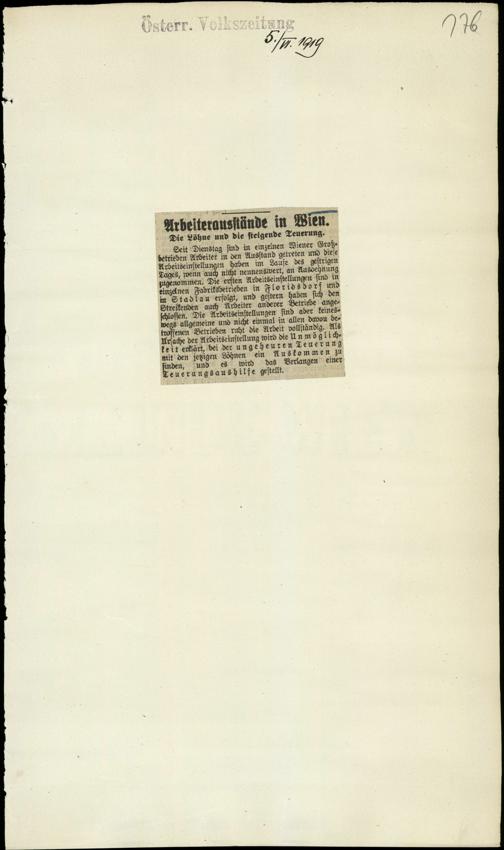 / Arbeiterausstände in Wien. 5.6.1919