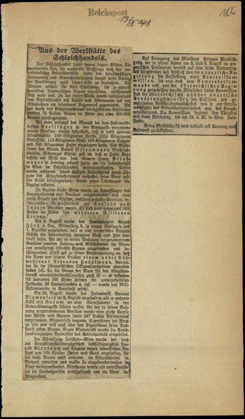 / Aus der Werkstätte des Schleichhandels. 13.9.1918