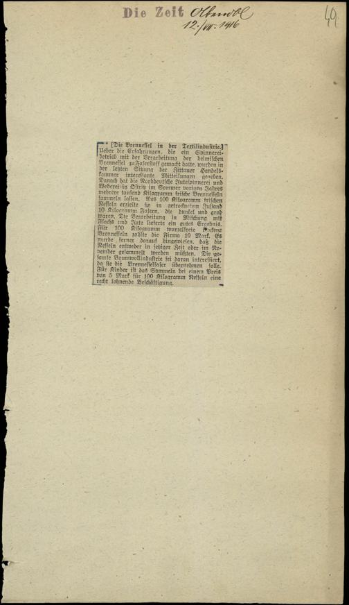 / Die Brennessel in der Textilindustrie. 12.7.1916