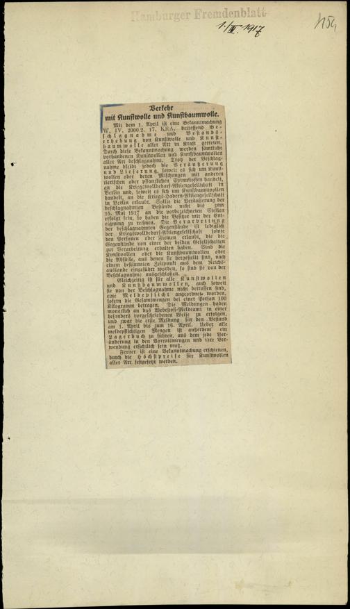 / Verkehr mit Kunstwolle und Kunstbaumwolle. 1.4.1917
