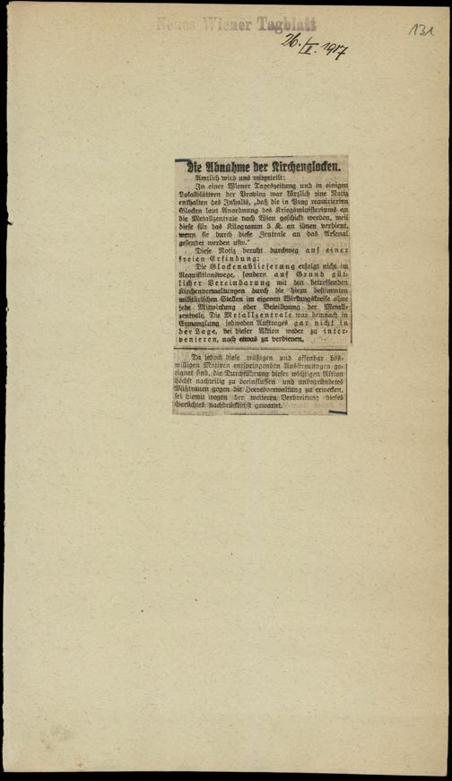 / Die Abnahme der Kirchenglocken. 26.2.1917