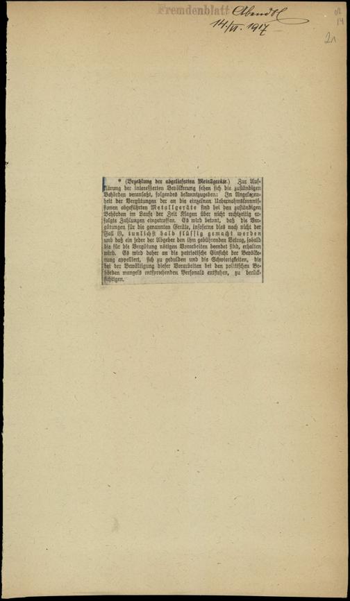 / Bezahlung der abgelieferten Metallgeräte. 14.6.1917