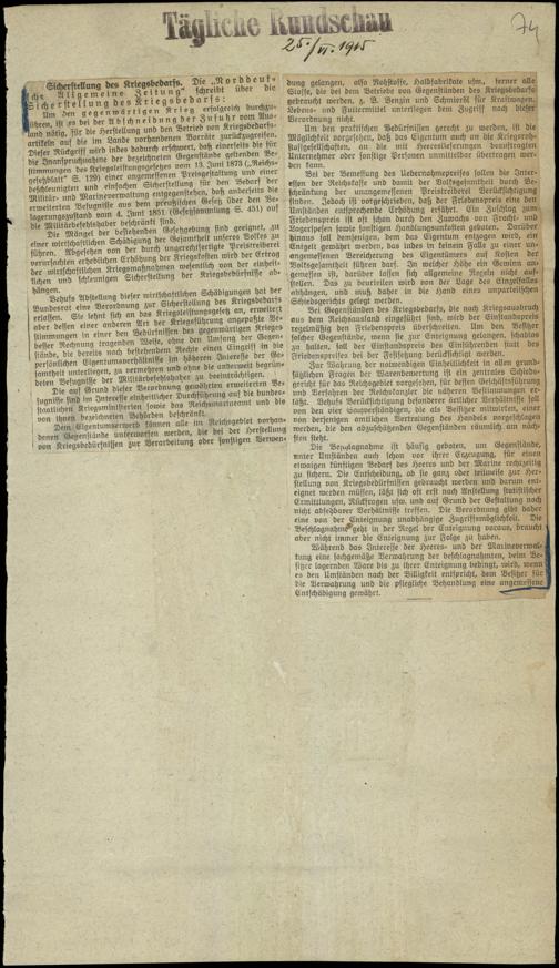 / Sicherstellung des Kriegsbedarfs. 25.6.1915
