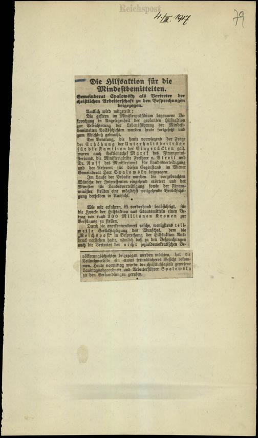 / Die Hilfsaktion für die Mindestbemittelten. 4.3.1917