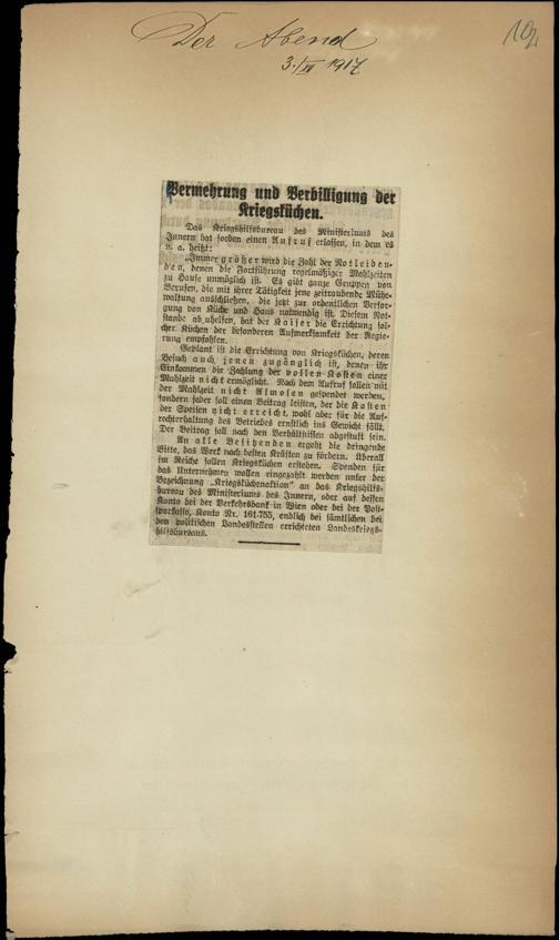 / Vermehrung und Verbilligung der Kriegsküchen. 3.12.1917