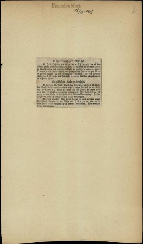 / Amerikanischer Bericht. Englischer Kriegsbericht. 18.7.1918