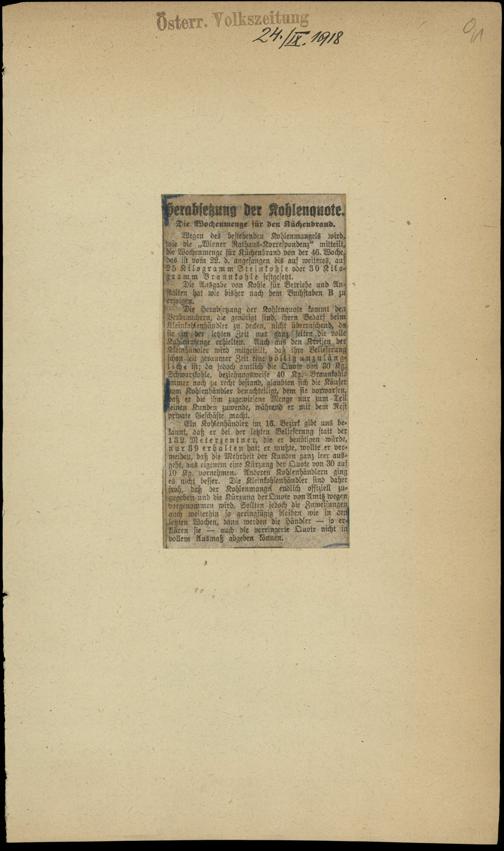 / Herabsetzung der Kohlenquote. 24.9.1918