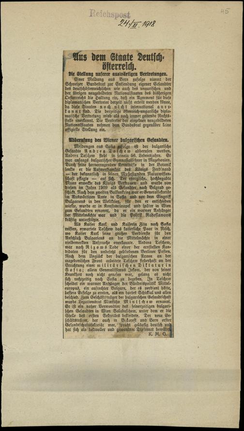 / Aus dem Staate Deutsch-österreich. 24.11.1918