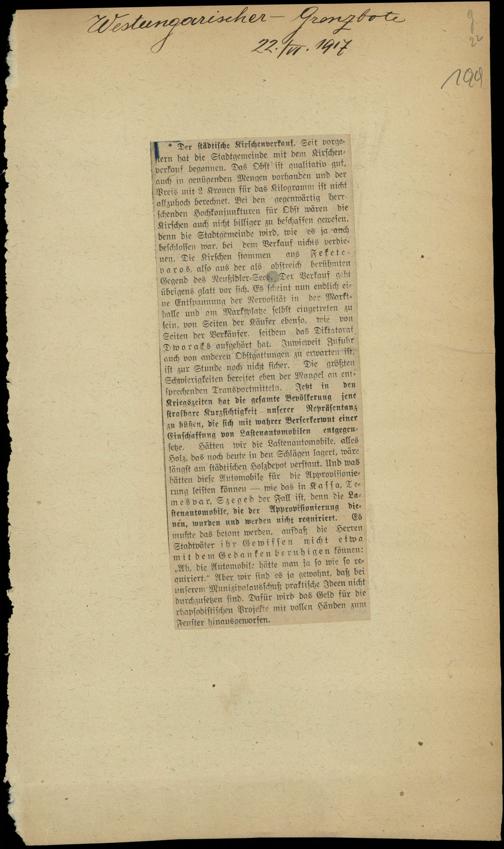 / Der städtische Kirschenverkauf. 22.6.1917
